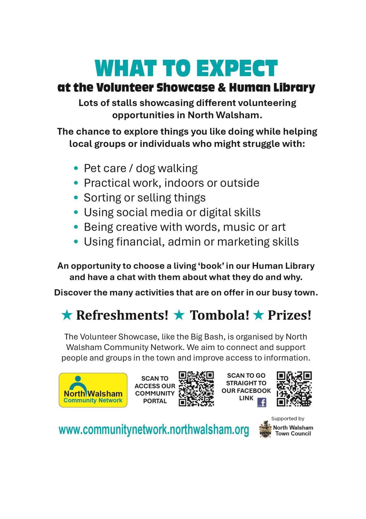 Scan me or visit www.getinvolvednorfolk.org.uk/o/North-Walsham-Community-Network/opportunities/Volunteer-Showcase/97999 to join